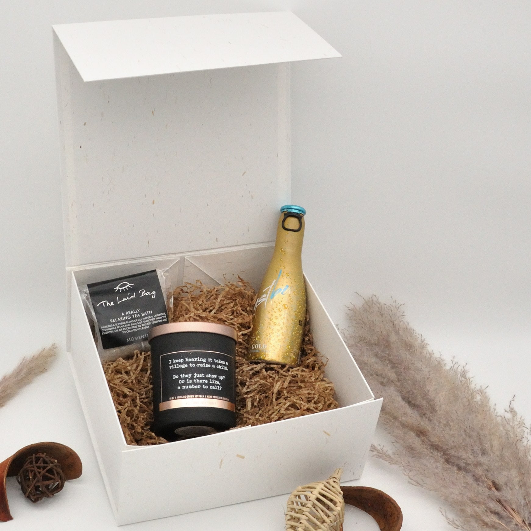 After birth, the first months will be devoted to the newborn baby 24 hours a day, 7 days a week. This period is always accompanied by a lack of sleep, household tasks that you do not have time for, ... After a while this can start to weigh heavily. This package aims to support the new mother to help her relax. A warm bath, a nice scented candle and a glass of non-alcoholic bubbles provide the ultimate moment of relaxation.