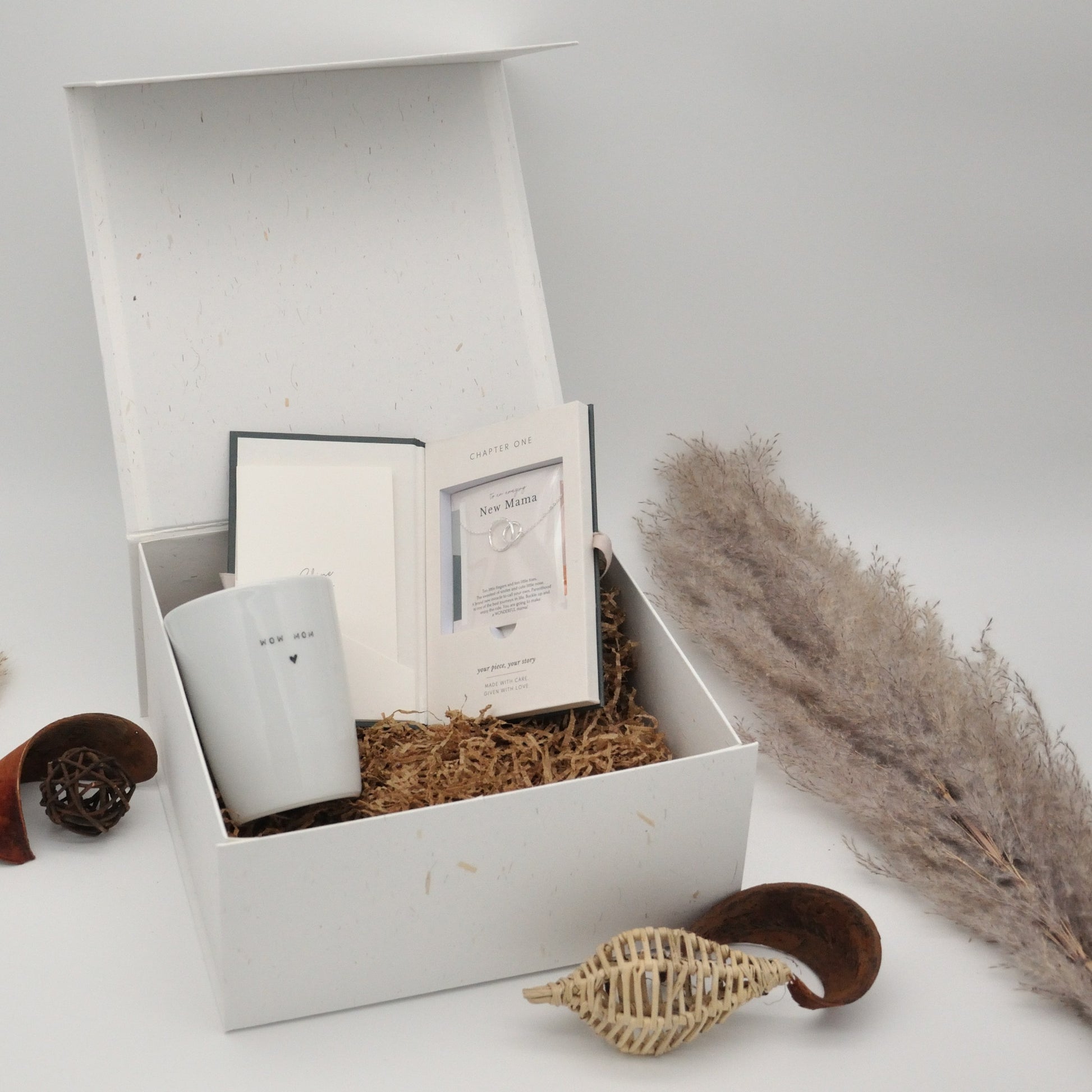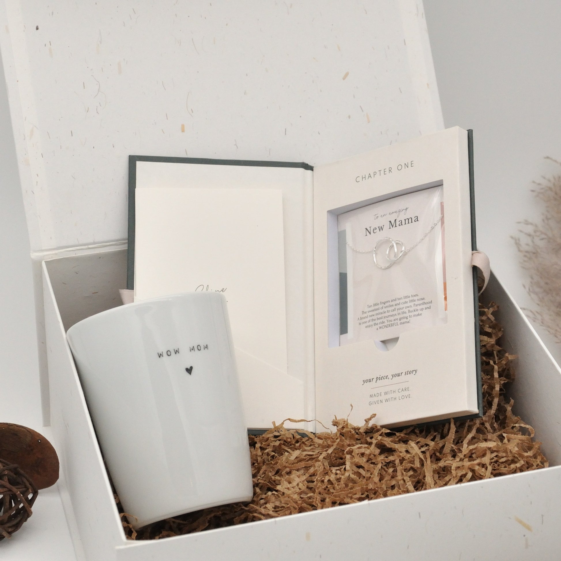 All our gift boxes are offered and shipped in a luxury gift box , which can be given directly to the (future) mother. In addition, you can add a card with your own text that will be handwritten by the Wowwy team.